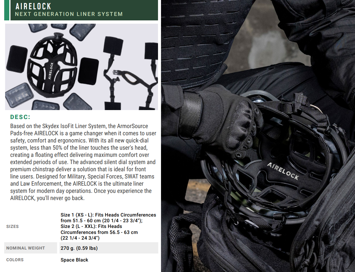 The advanced silent dial system and premium chinstrap deliver a solution that is ideal for front line users. The AIRELOCK is the ultimate liner system for modern day operations. The AireLock Liner System is versatile and modular, and built to allow every user the ability to customize their own head protection configurations specific to their needs.